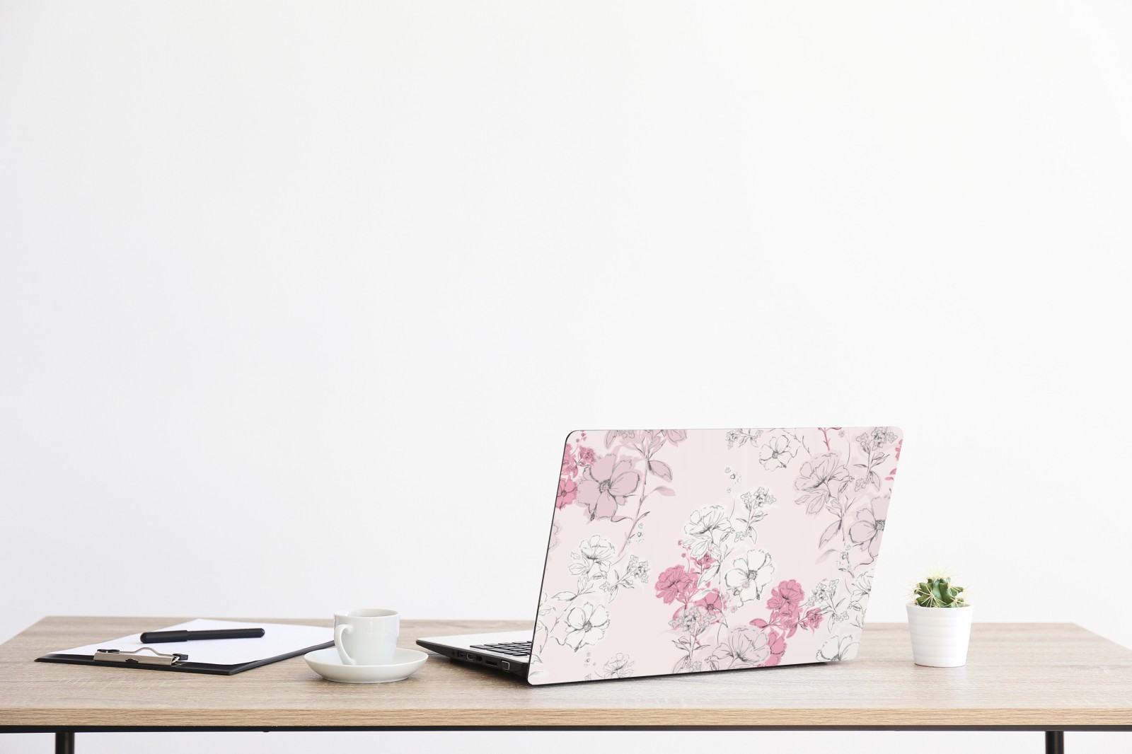 Zart gezeichnetes Blumenmuster in sanften Rosa- und Grautönen verleiht jedem Raum eine beruhigende, romantische Atmosphäre.