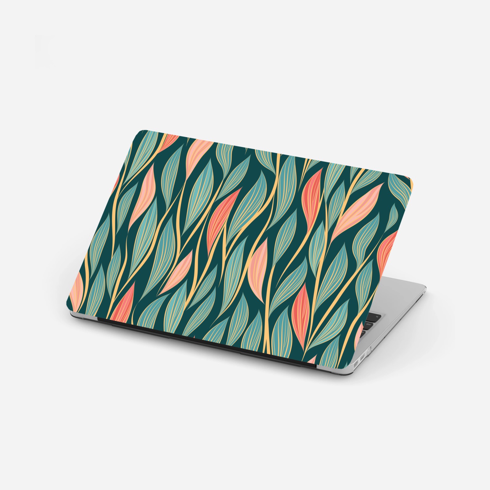 Laptop-Aufkleber Botanisches blattmuster in türkis und koralle