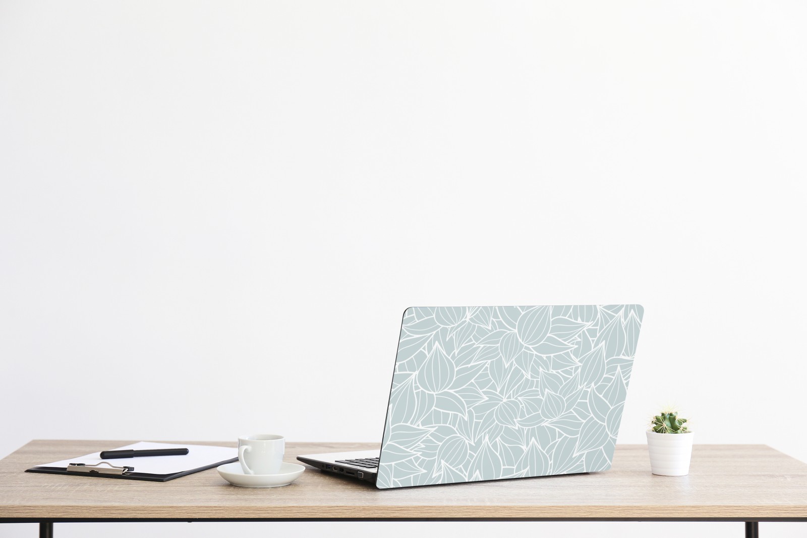Zartes botanisches blättermuster in sanftem türkis schafft eine beruhigende natürliche Eleganz für jeden Raum.