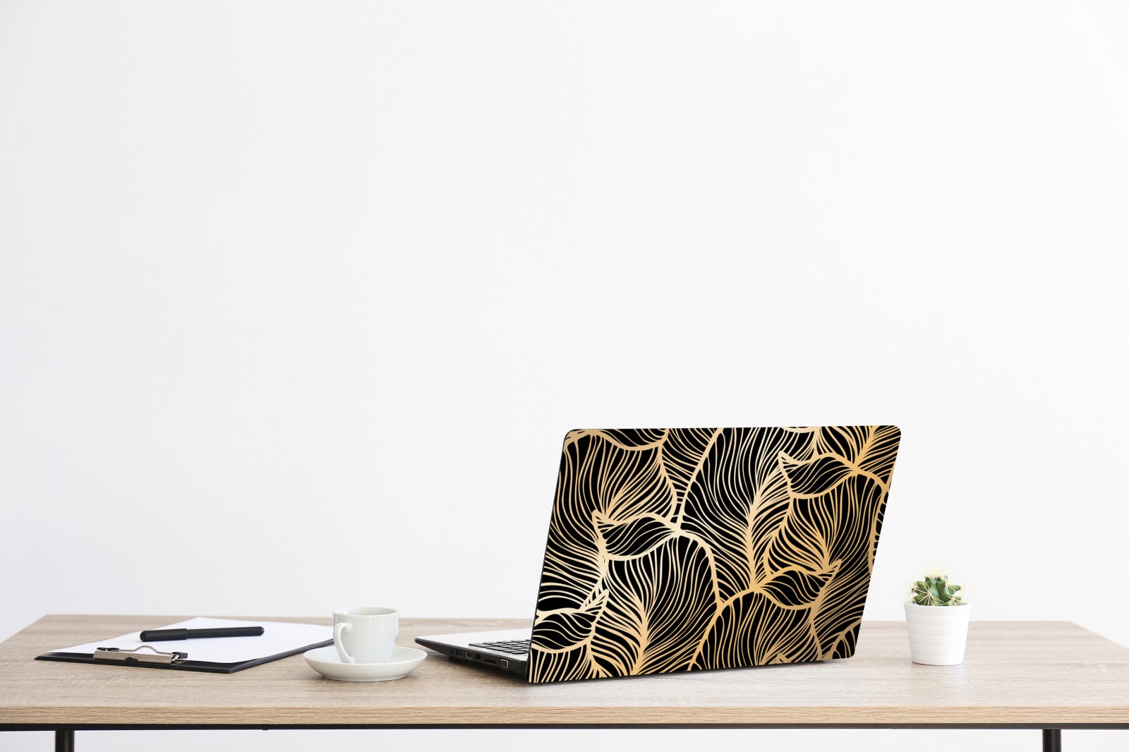 Laptop-Aufkleber goldenes blattmuster auf schwarzem hintergrund