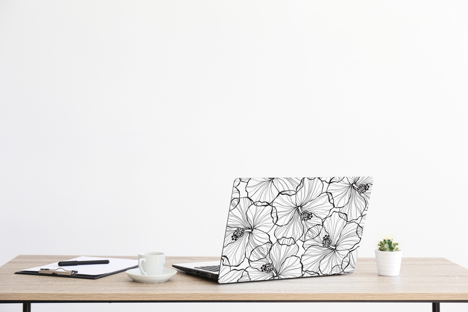 Laptop-Aufkleber schwarzweißes hibiskus line art muster