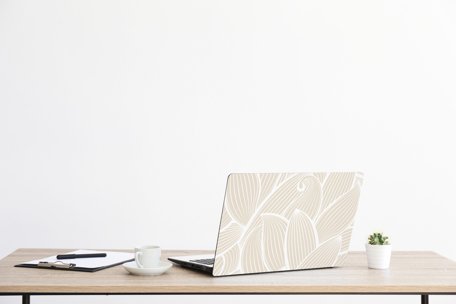 Beruhigendes beiges botanisches Muster mit fließenden Linien, ideal für ein skandinavisches Interieur.