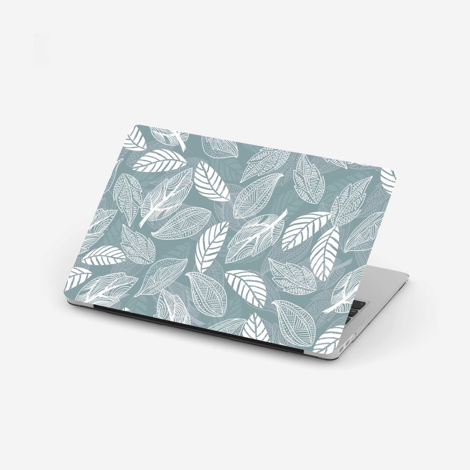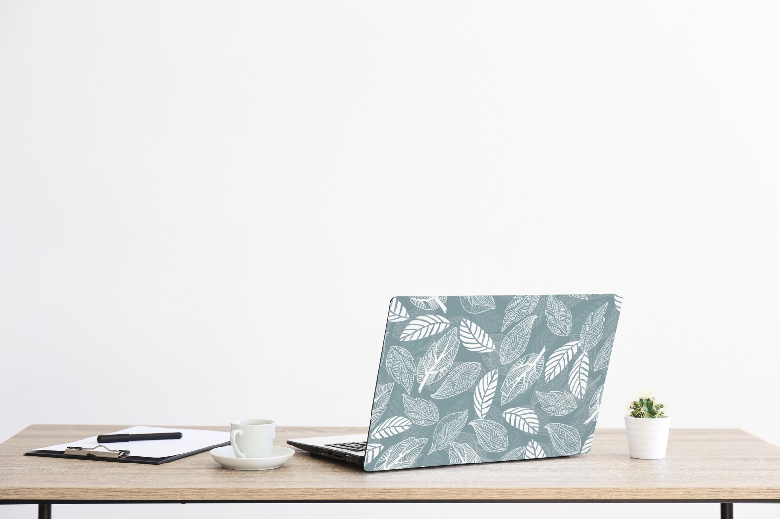 Laptop-Aufkleber handgezeichnetes blättermuster auf türkisfarbenem hintergrund