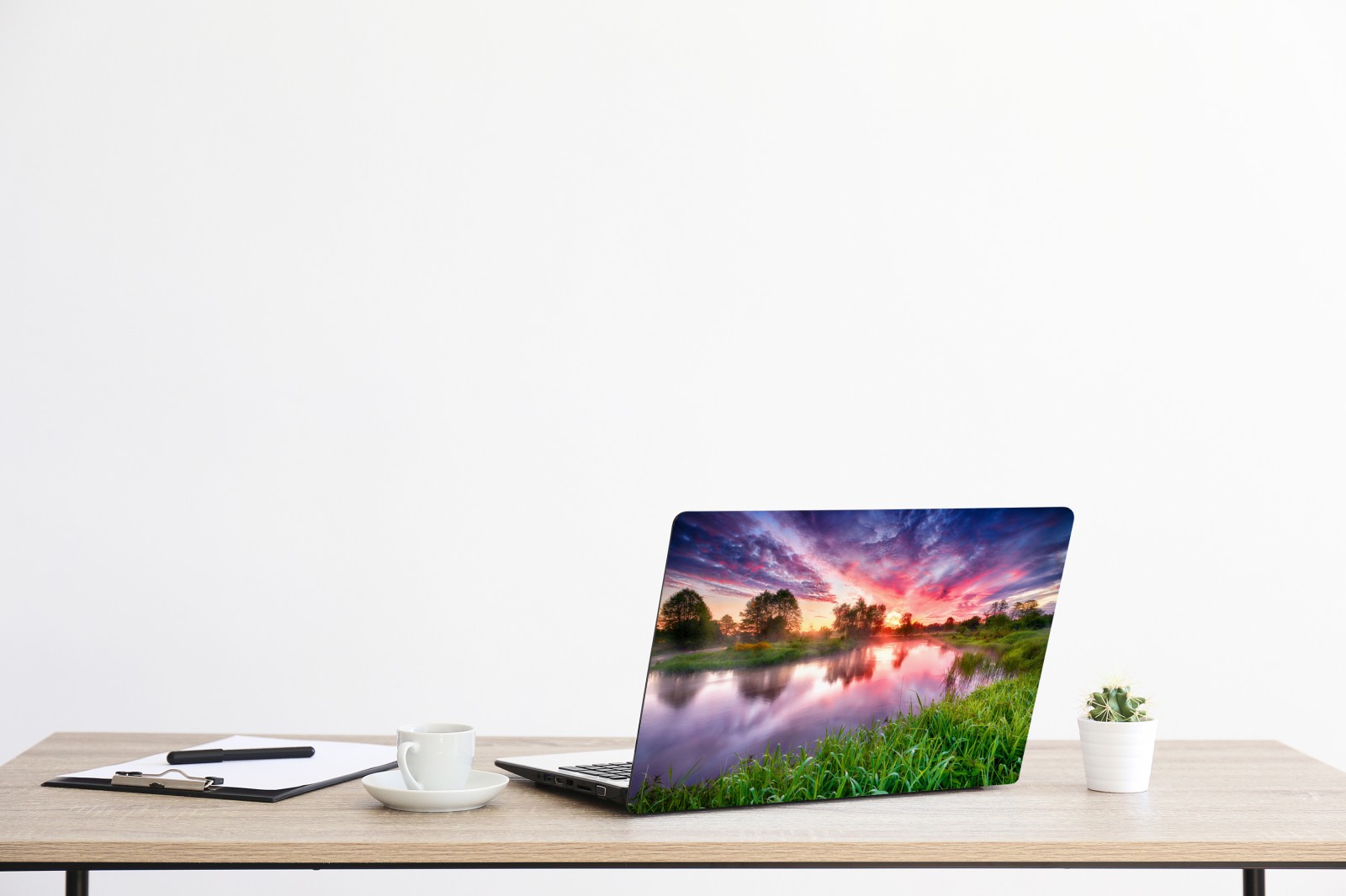 Laptop-Aufkleber ruhiger sommer sonnenaufgang am flussufer