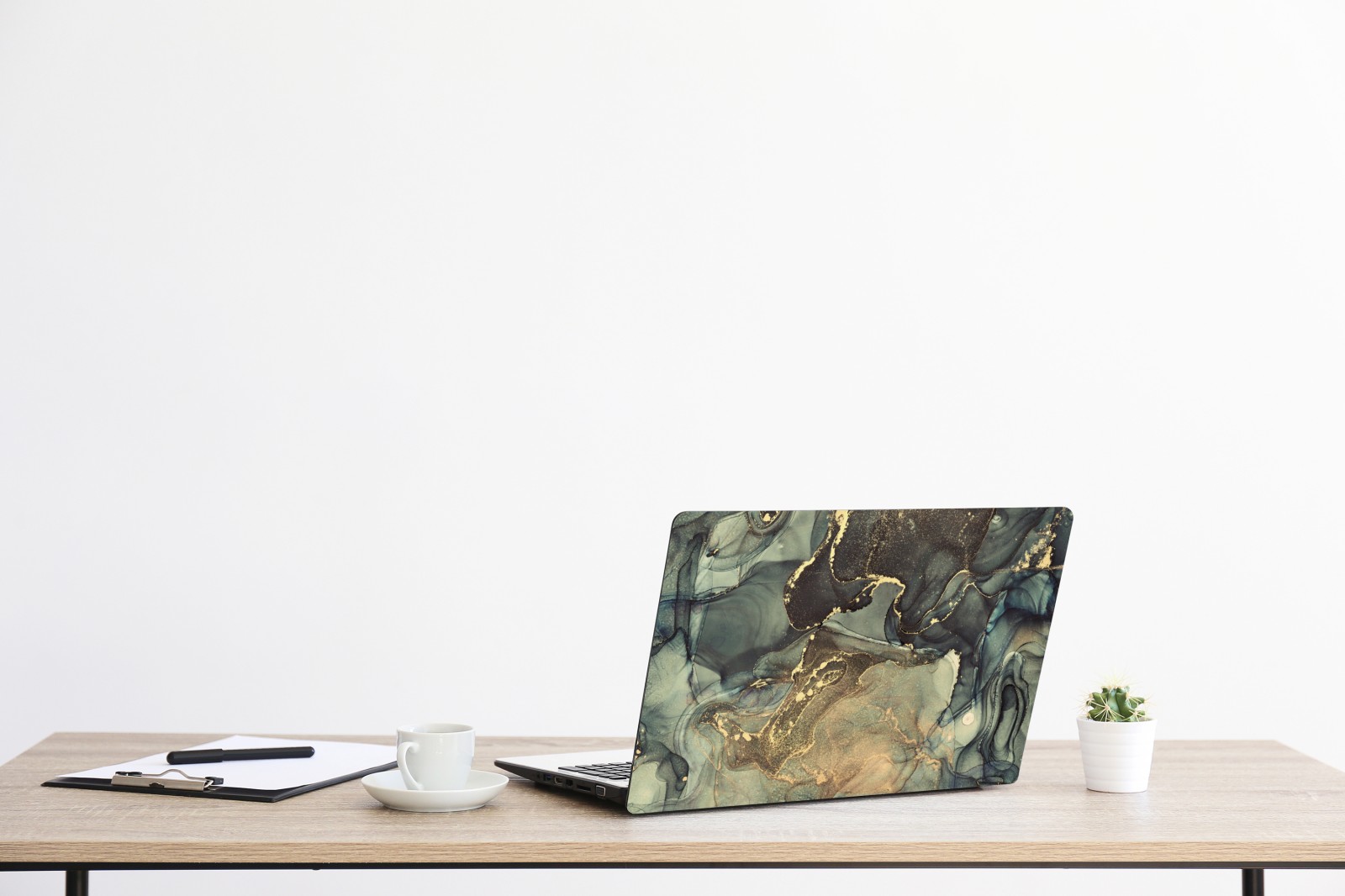 Laptop-Aufkleber türkis und gold fließende abstraktion