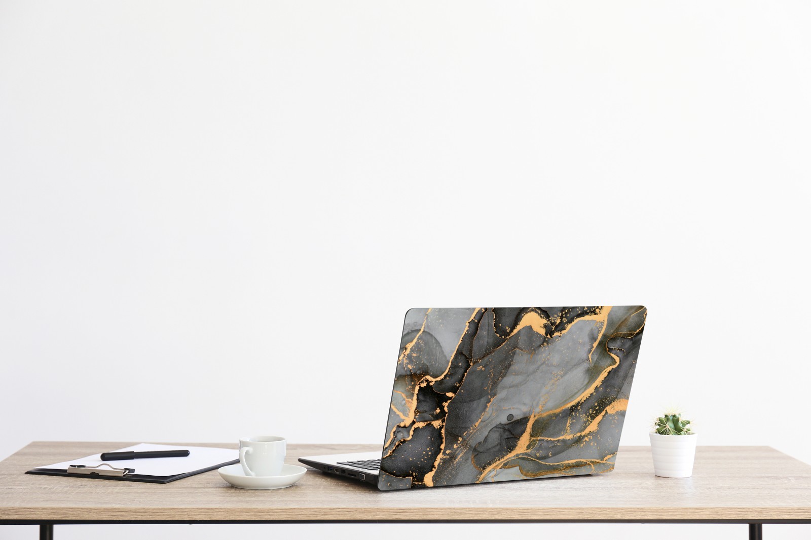 Laptop-Aufkleber rauchiger grauer marmor mit goldenen adern