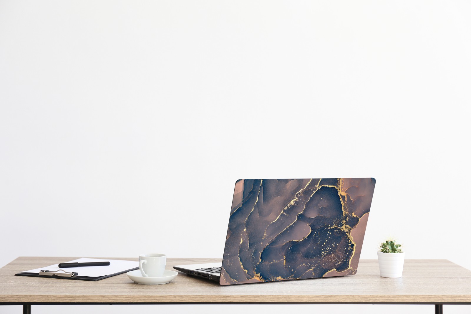 Laptop-Aufkleber marineblau-goldene marmorabstraktion