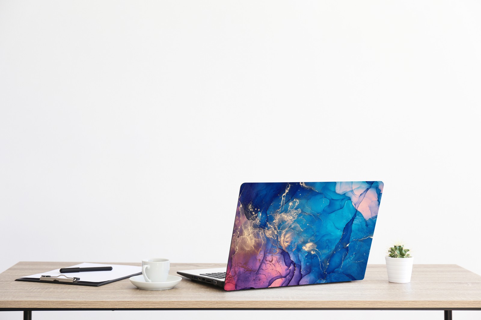 Laptop-Aufkleber blaue marmorierte alkoholtinten abstraktion