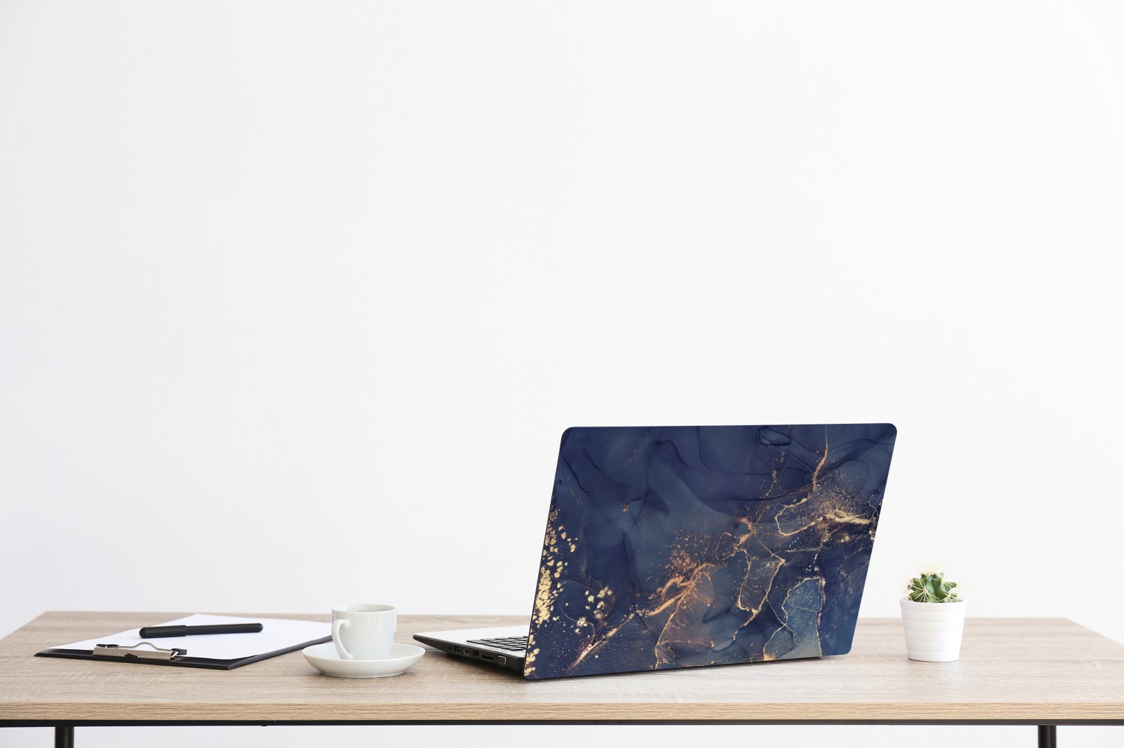 Laptop-Aufkleber dunkelblaue marmor-abstraktion mit goldenen adern