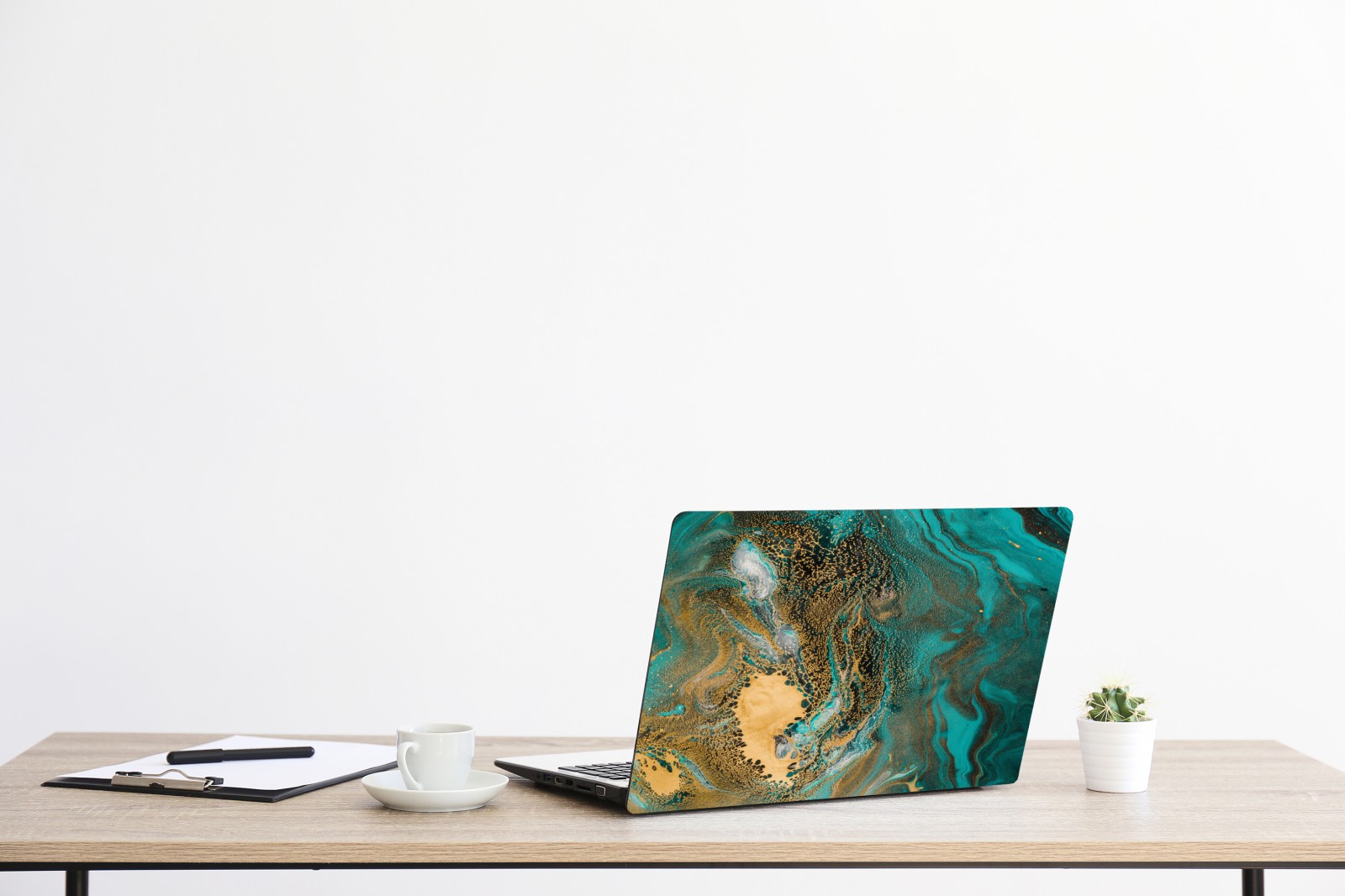 Laptop-Aufkleber türkis und gold fließende abstraktion