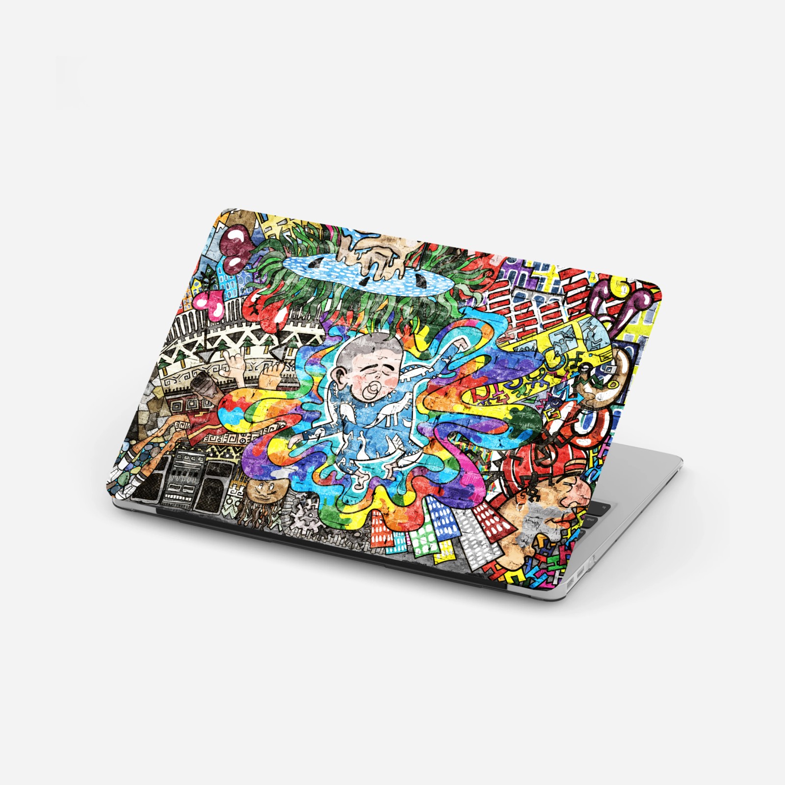 Laptop-Aufkleber Buntes graffiti-mural mit träumendem kind