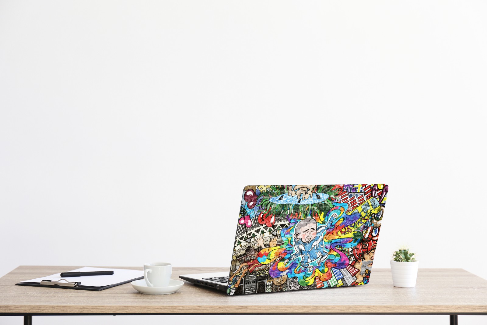 Laptop-Aufkleber buntes graffiti-mural mit träumendem kind