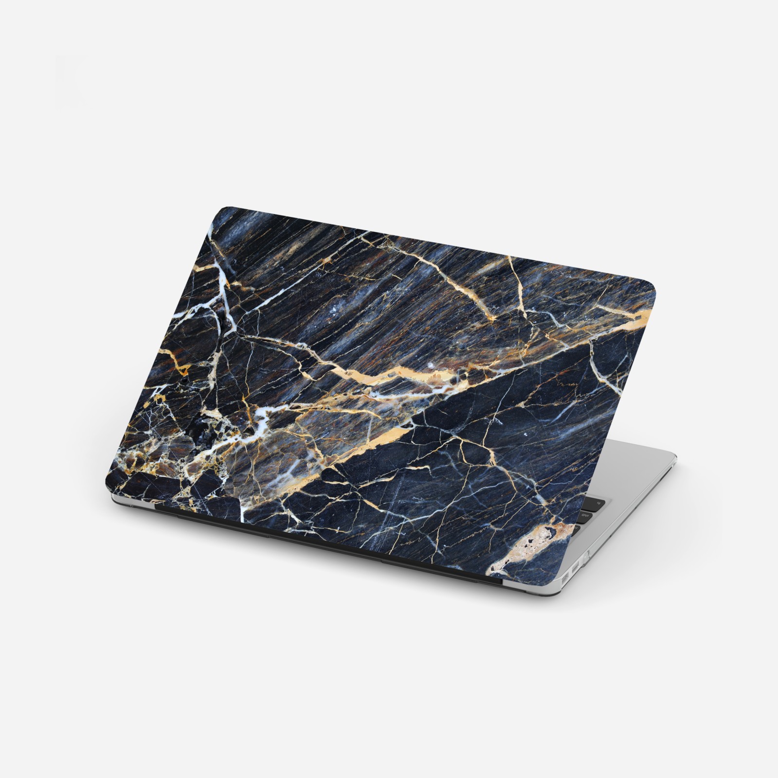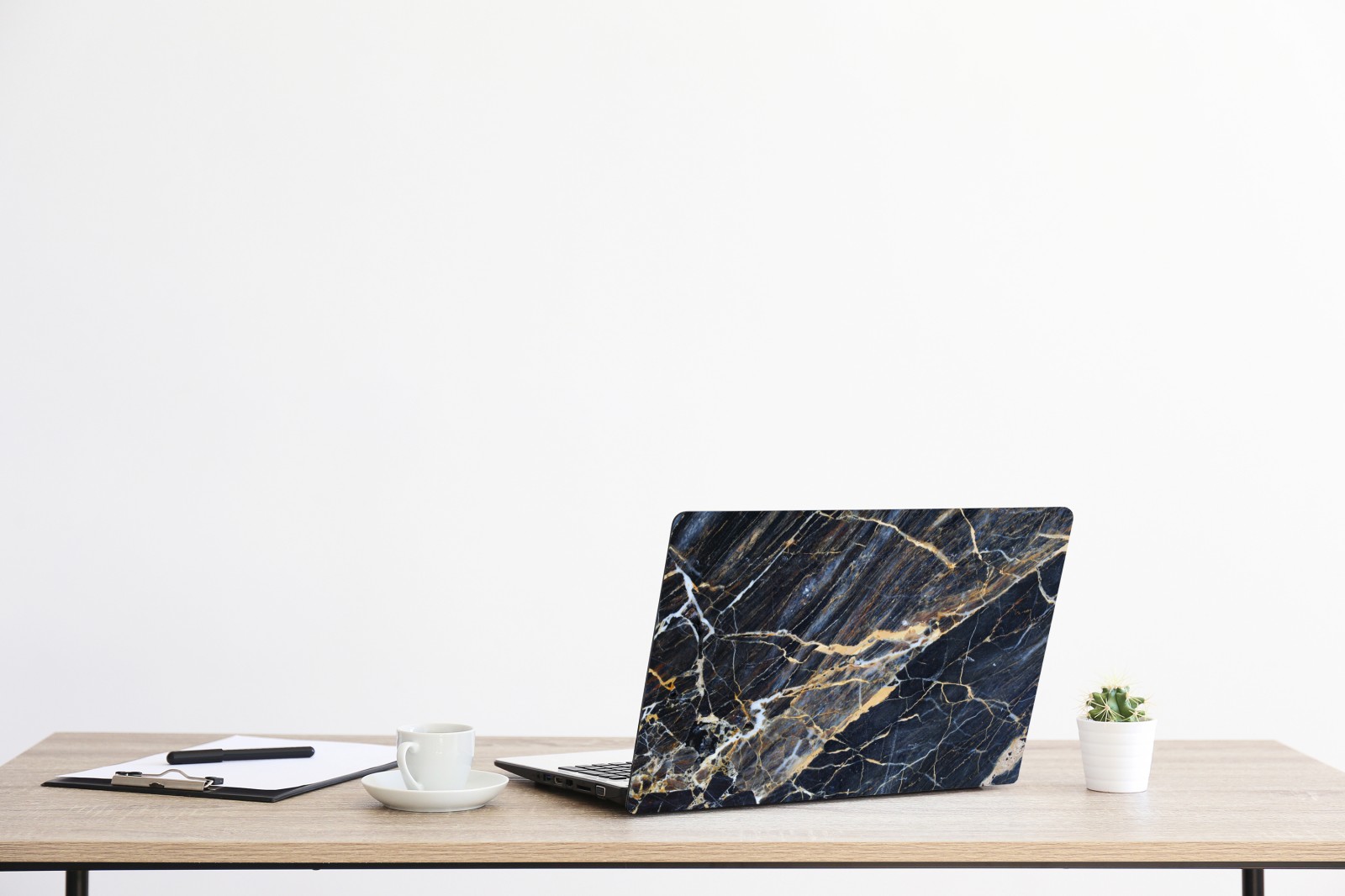 Laptop-Aufkleber dunkler marmor mit goldenen und cremefarbenen adern