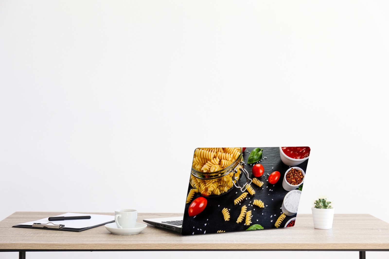 Laptop-Aufkleber pasta zutaten arrangiert mit tomaten und basilikum