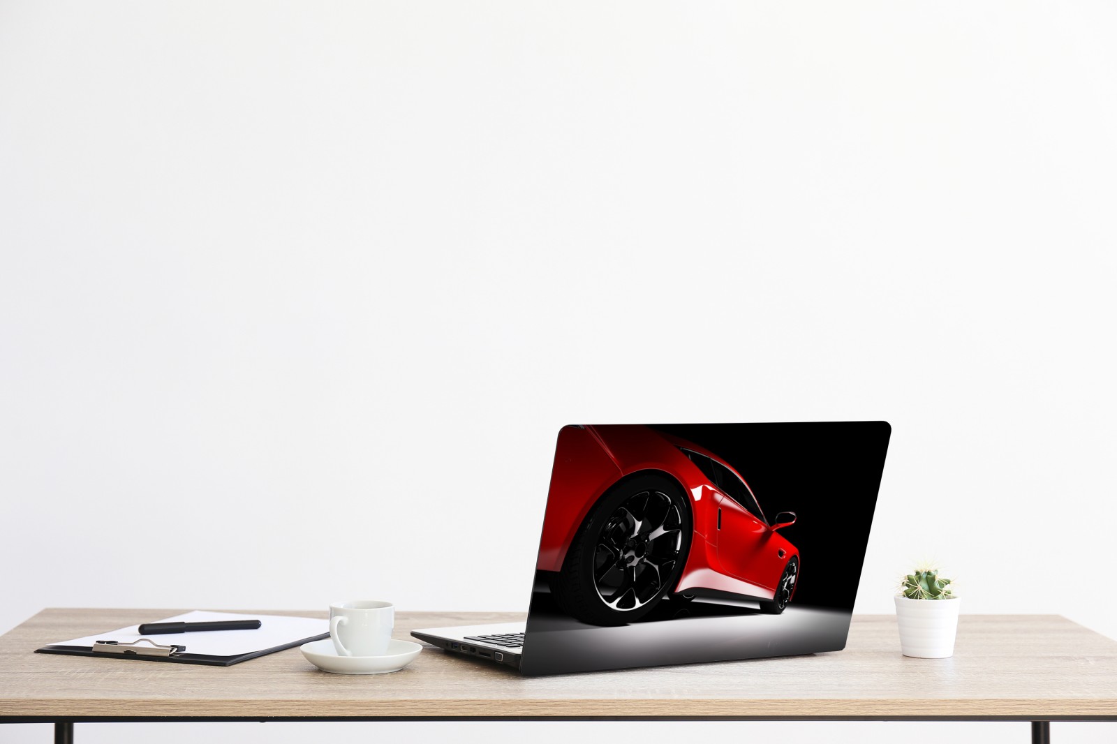 Laptop-Aufkleber nahaufnahme eines roten sportwagens