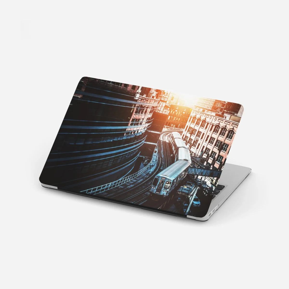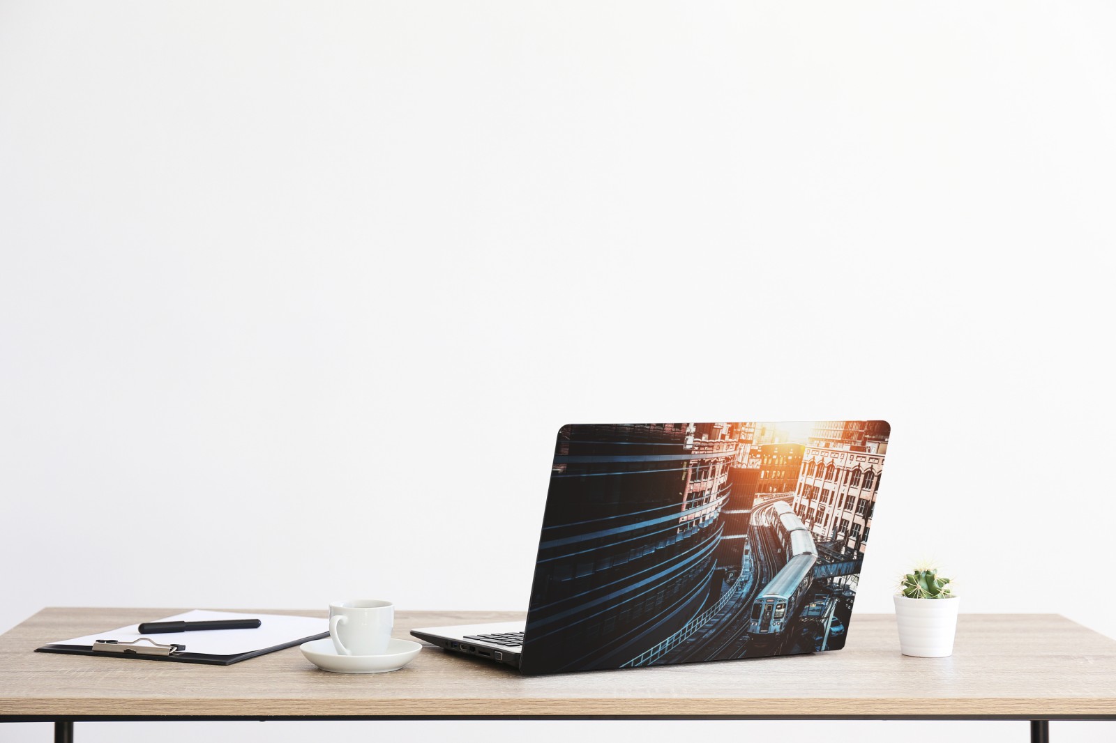 Laptop-Aufkleber Chicago hochbahn zwischen gebäuden