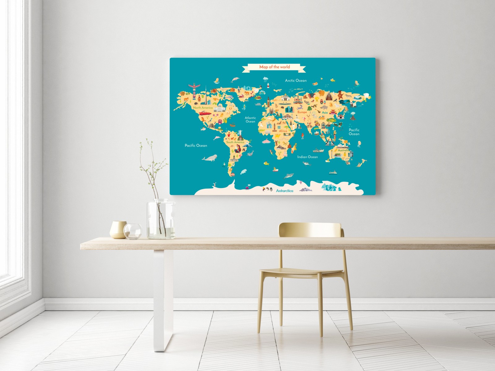 Leinwandbild bunte illustrierte weltkarte für kinder