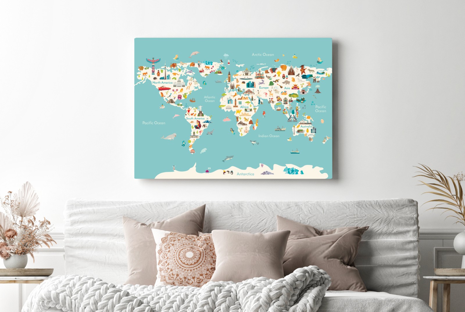Leinwandbild bunte illustrierte weltkarte für kinder