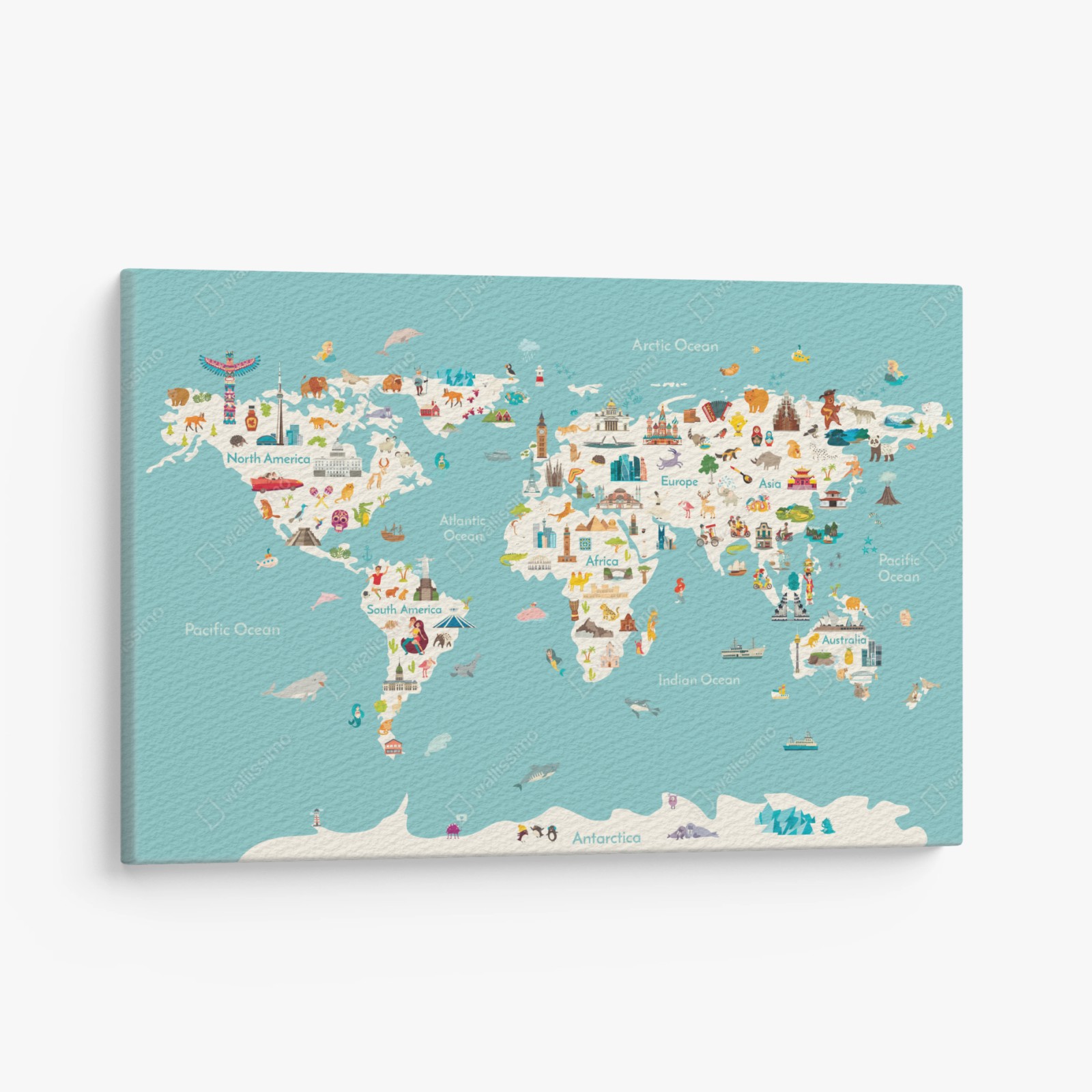 Leinwandbild Bunte illustrierte weltkarte für kinder
