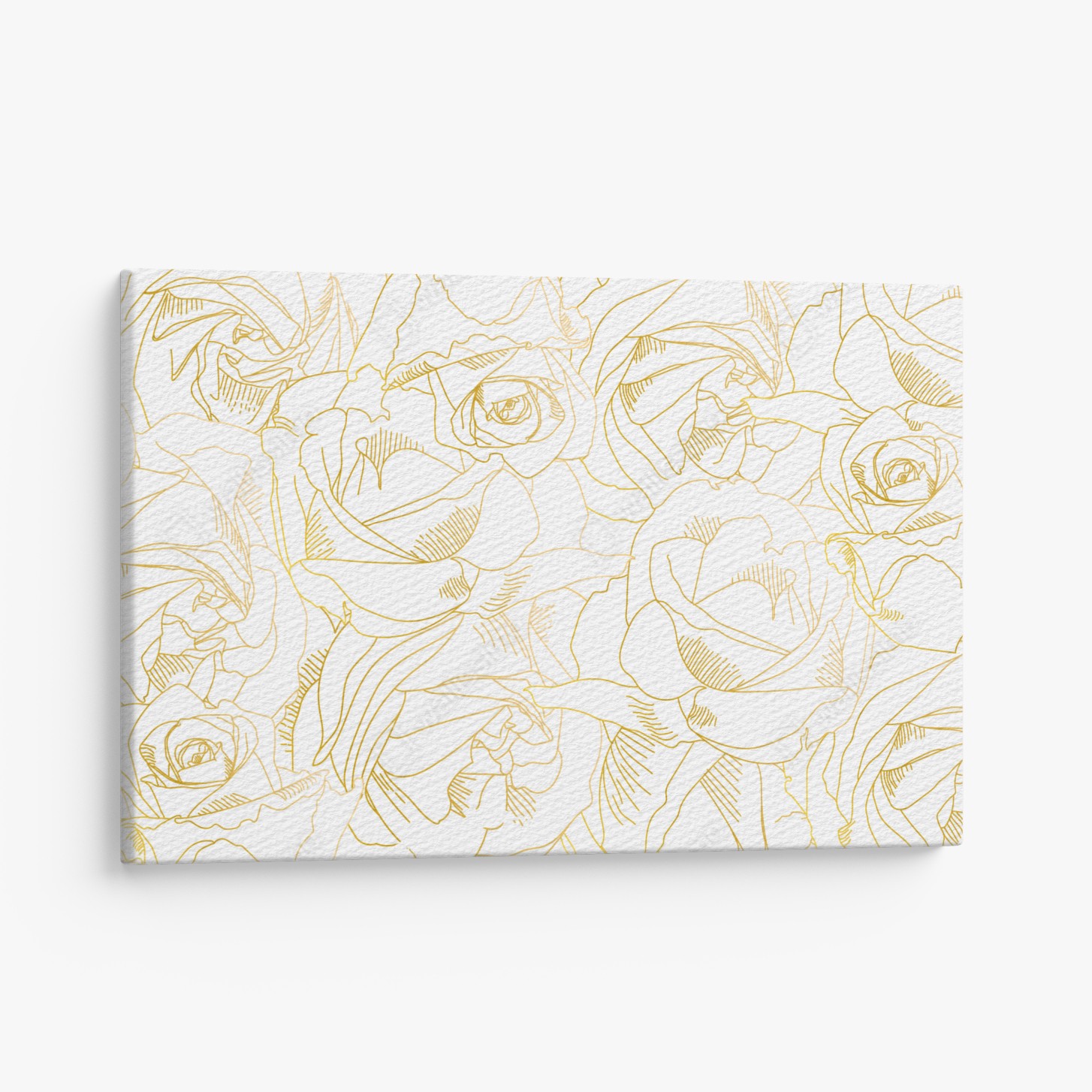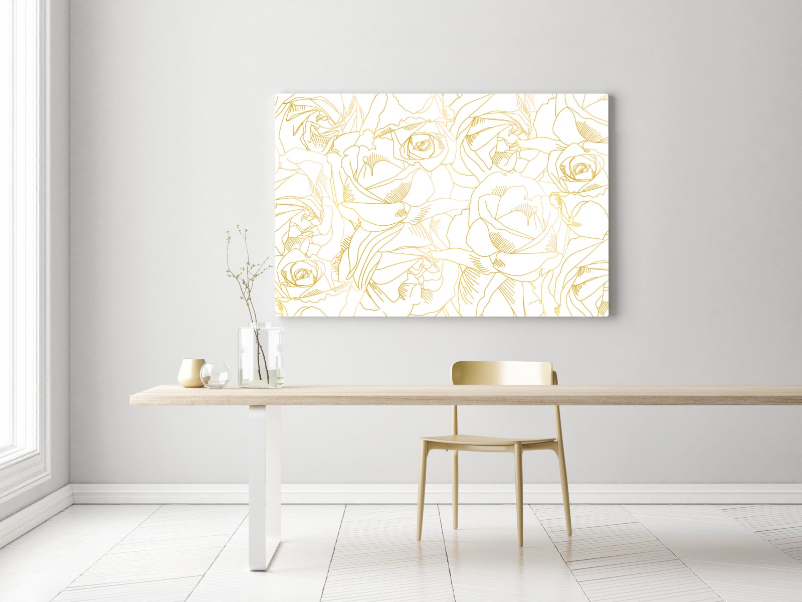 Feine goldene Linien zeichnen Rosen auf hellem Hintergrund und verleihen jedem Raum eine elegante, moderne botanische Note.