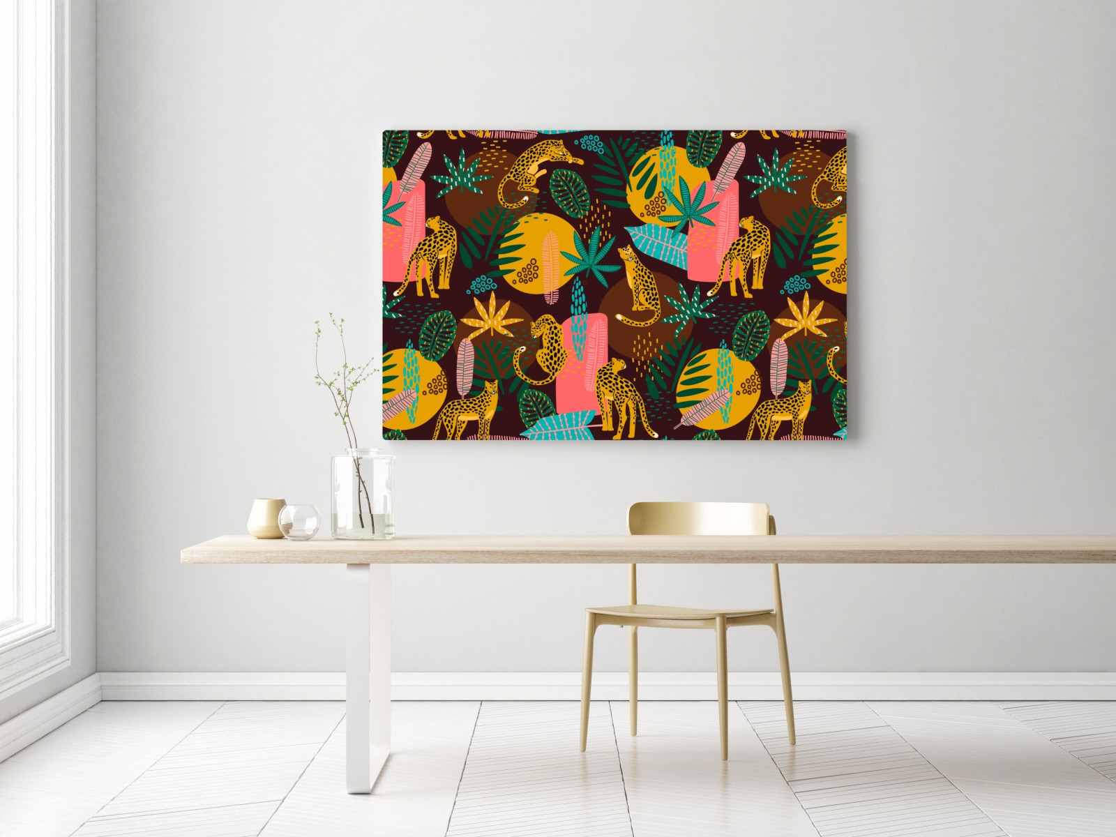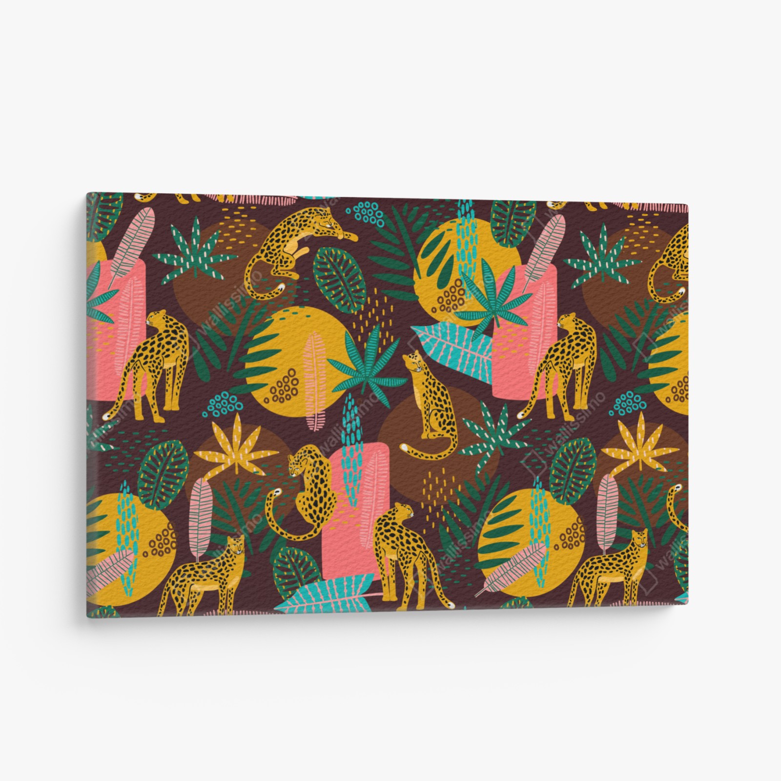 Leinwandbild tropisches gepardenmuster mit lebhaften blättern – Wallnifity®