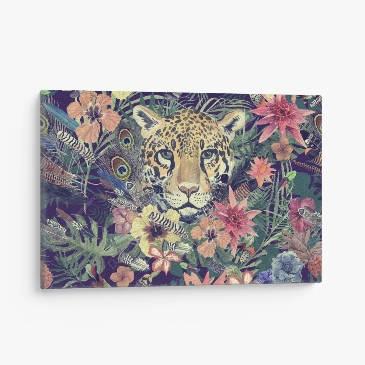 Leinwandbild vintage aquarell leopard im tropischen dschungel – Wallnifity®
