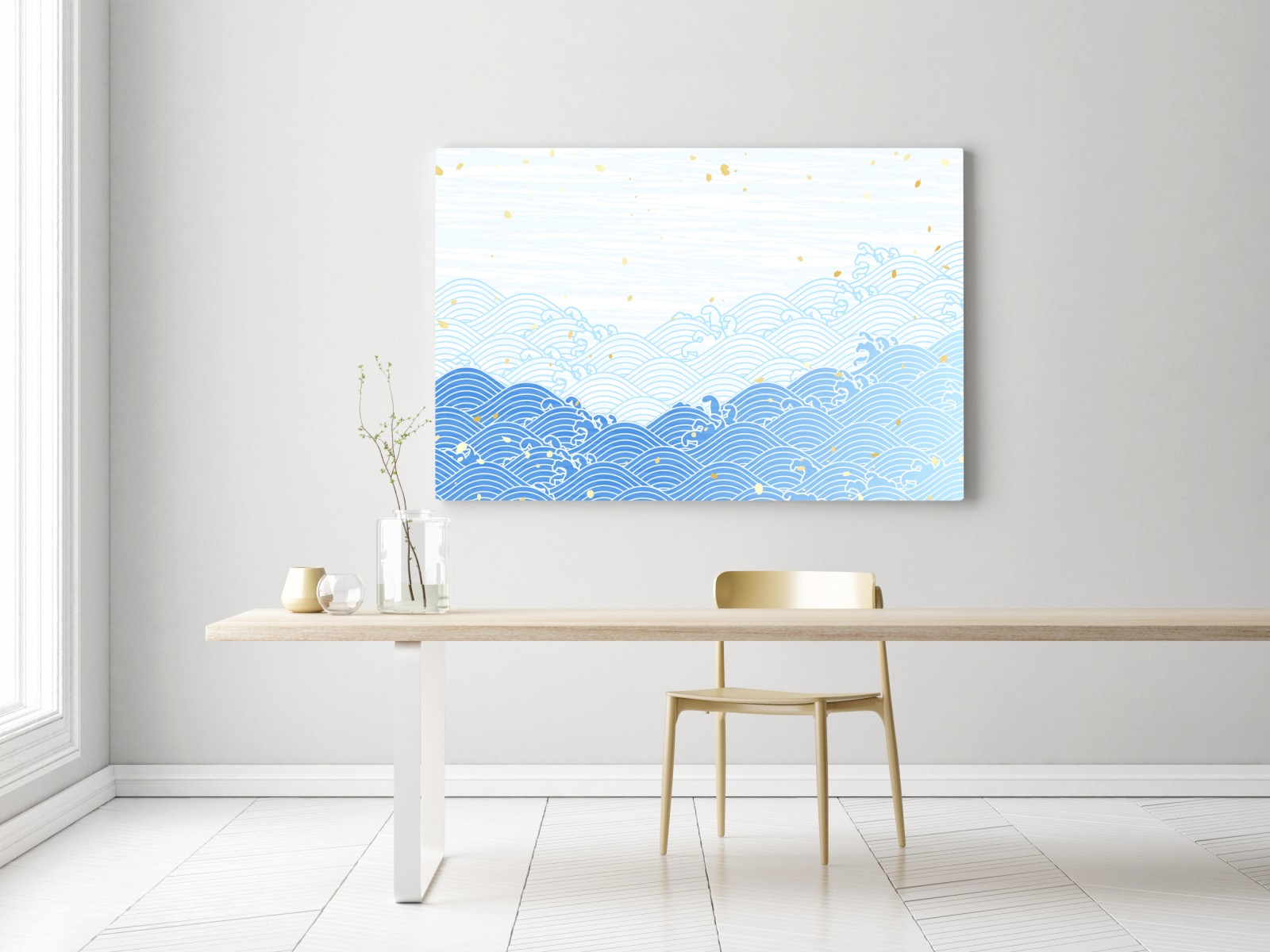 Leinwandbild ruhige blaue wellen mit goldakzenten