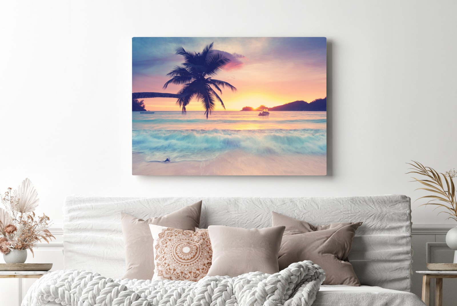Leinwandbild tropischer pastellsonnenuntergang am meer – Wallnifity®