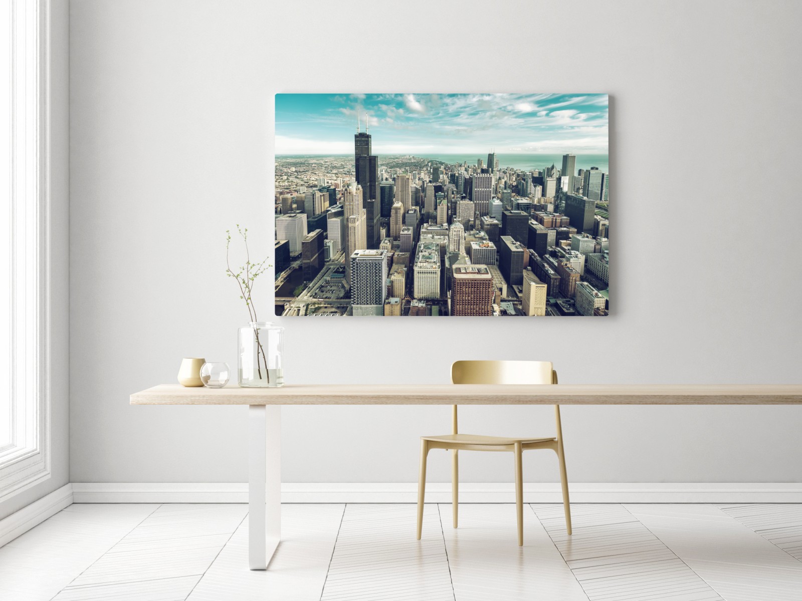 Leinwandbild Chicago luftaufnahme skyline in türkis vintage-tönen – Wallnifity®