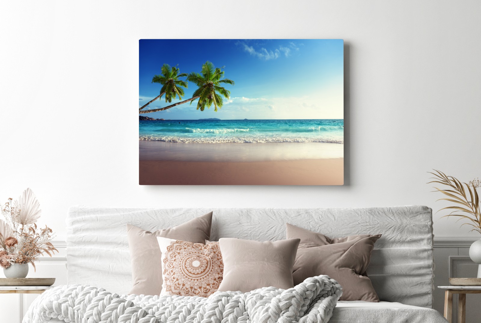 Bringen Sie die ruhige Schönheit eines tropischen Karibikstrandes mit türkisfarbenem Wasser, wiegenden Palmen und feinem Sand in Ihr Zuhause.