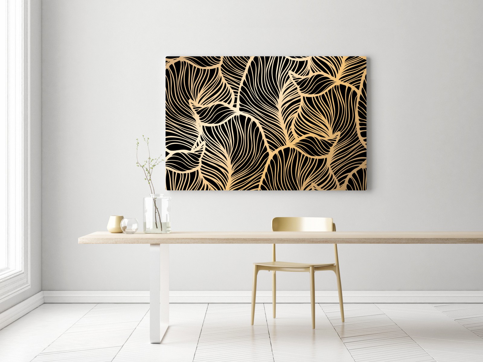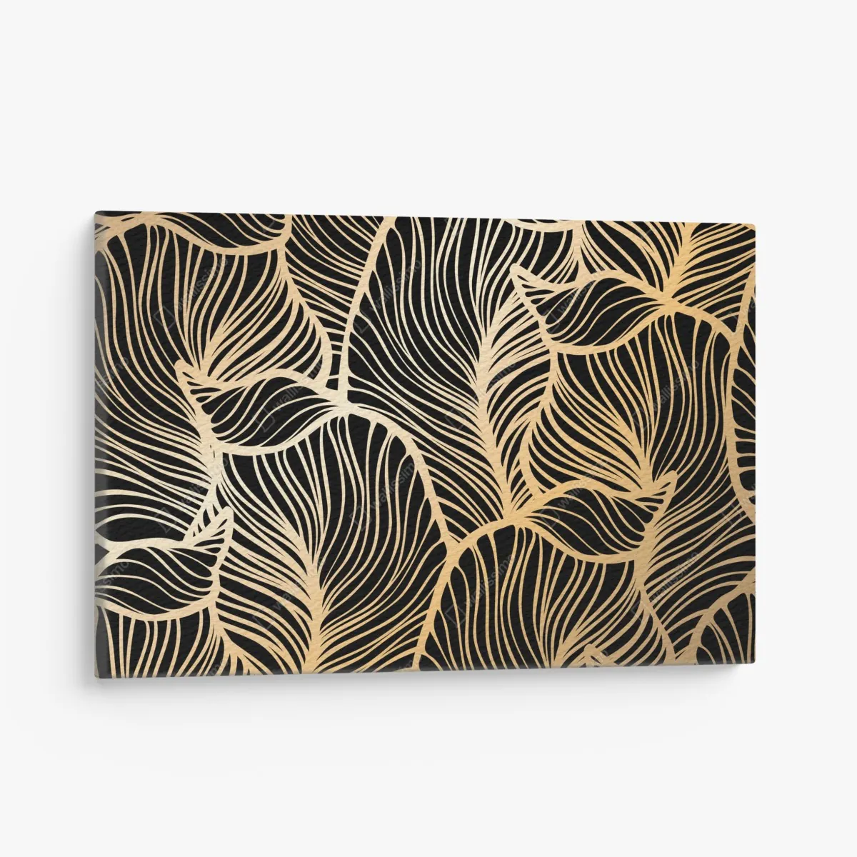 Leinwandbild goldenes blattmuster auf schwarzem hintergrund – Wallnifity®