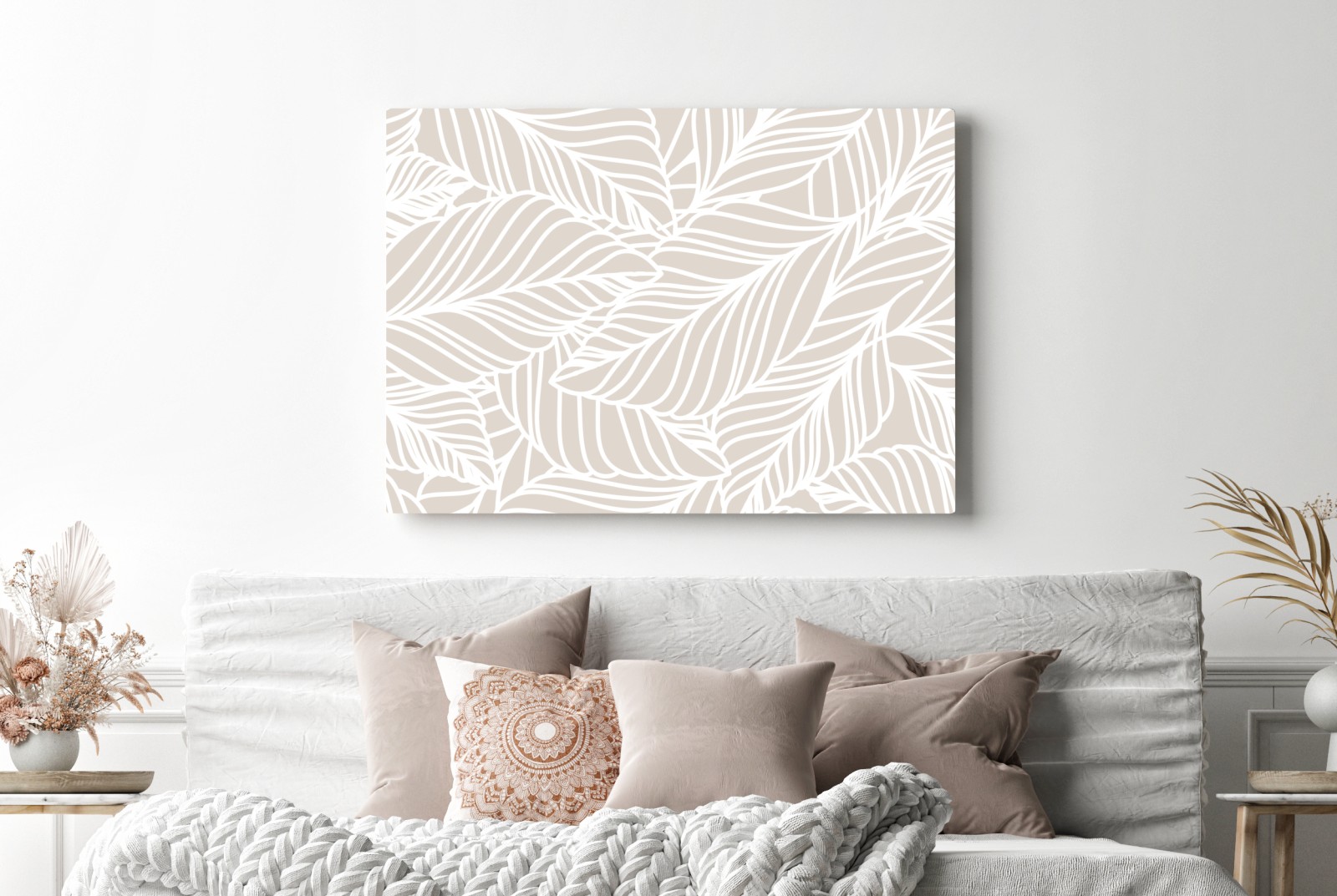 Sanftes beige-weißes Blattmuster schafft eine natürliche, ruhige Atmosphäre und passt zu skandinavischen und minimalistischen Interieurs.