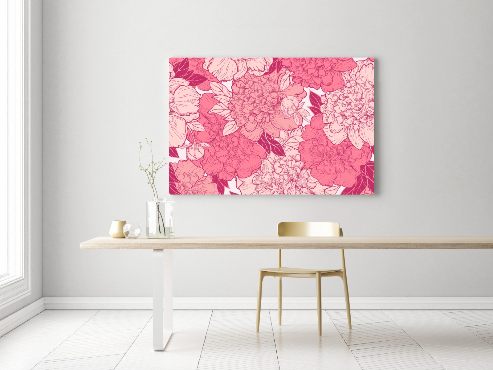 zartes rosa pfingstrosenmuster verleiht räumen einen botanischen akzent mit eleganten handgezeichneten details.