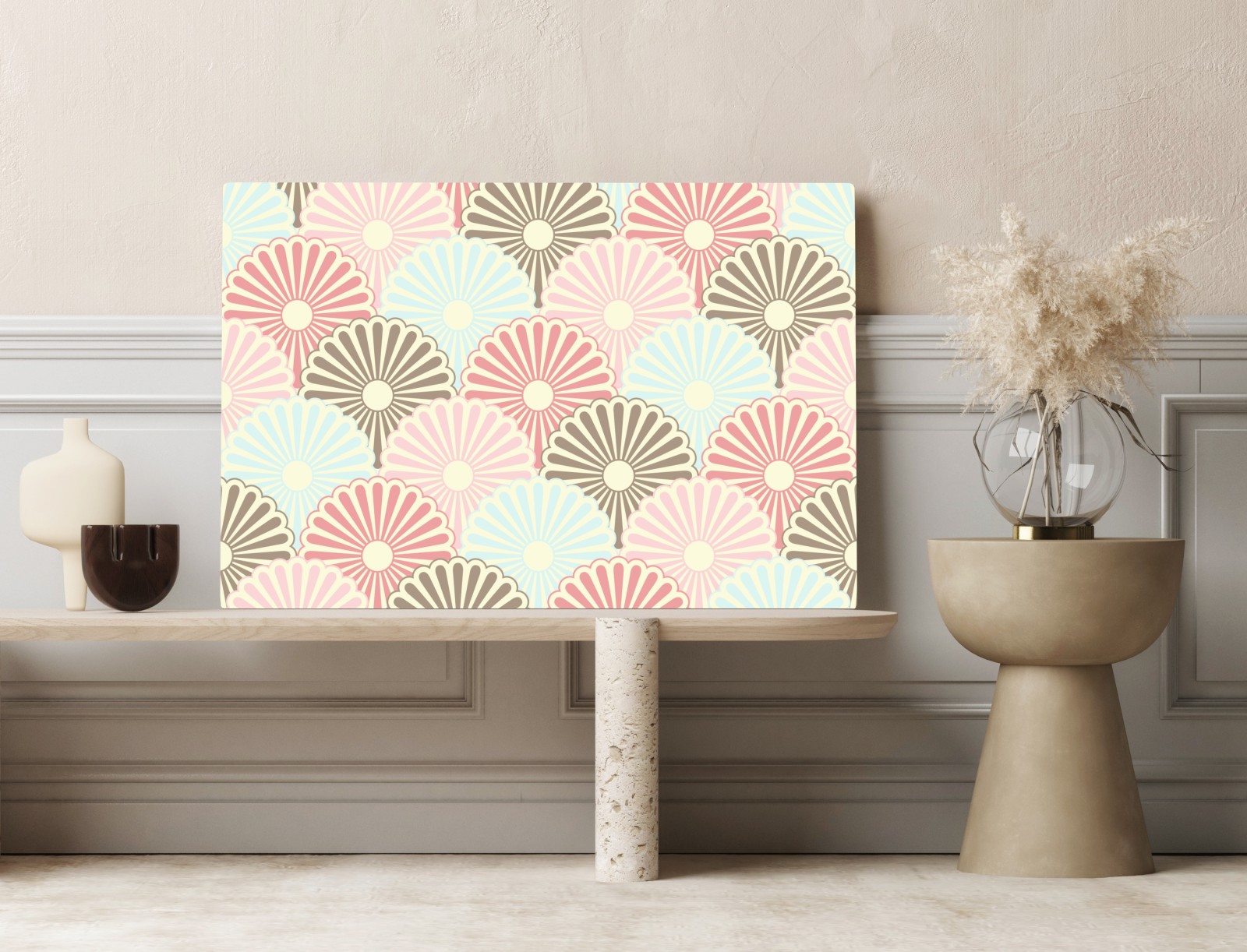 Zartes pastelliges Muschelmuster in Retro-Farben verleiht Räumen eine gemütliche und dekorative Atmosphäre.