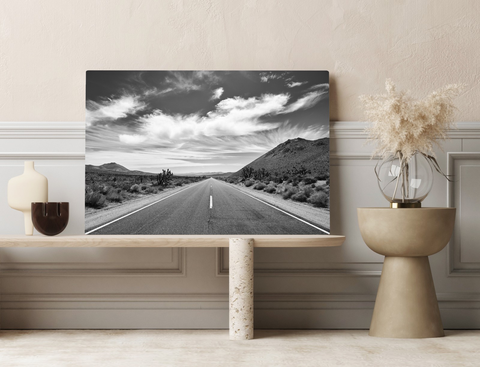 Leinwandbild Death Valley offene Straße in schwarzweiß – Wallnifity®