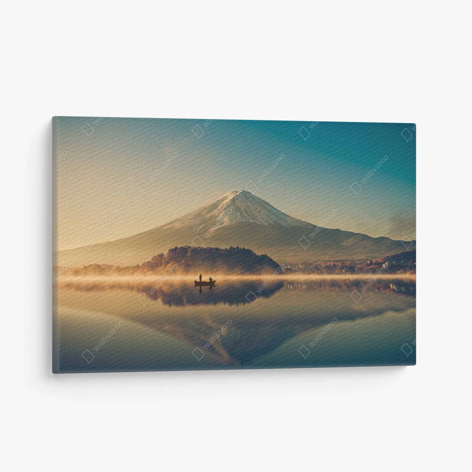 Leinwandbild Sonnenaufgang über Mount Fuji am Kawaguchiko-See