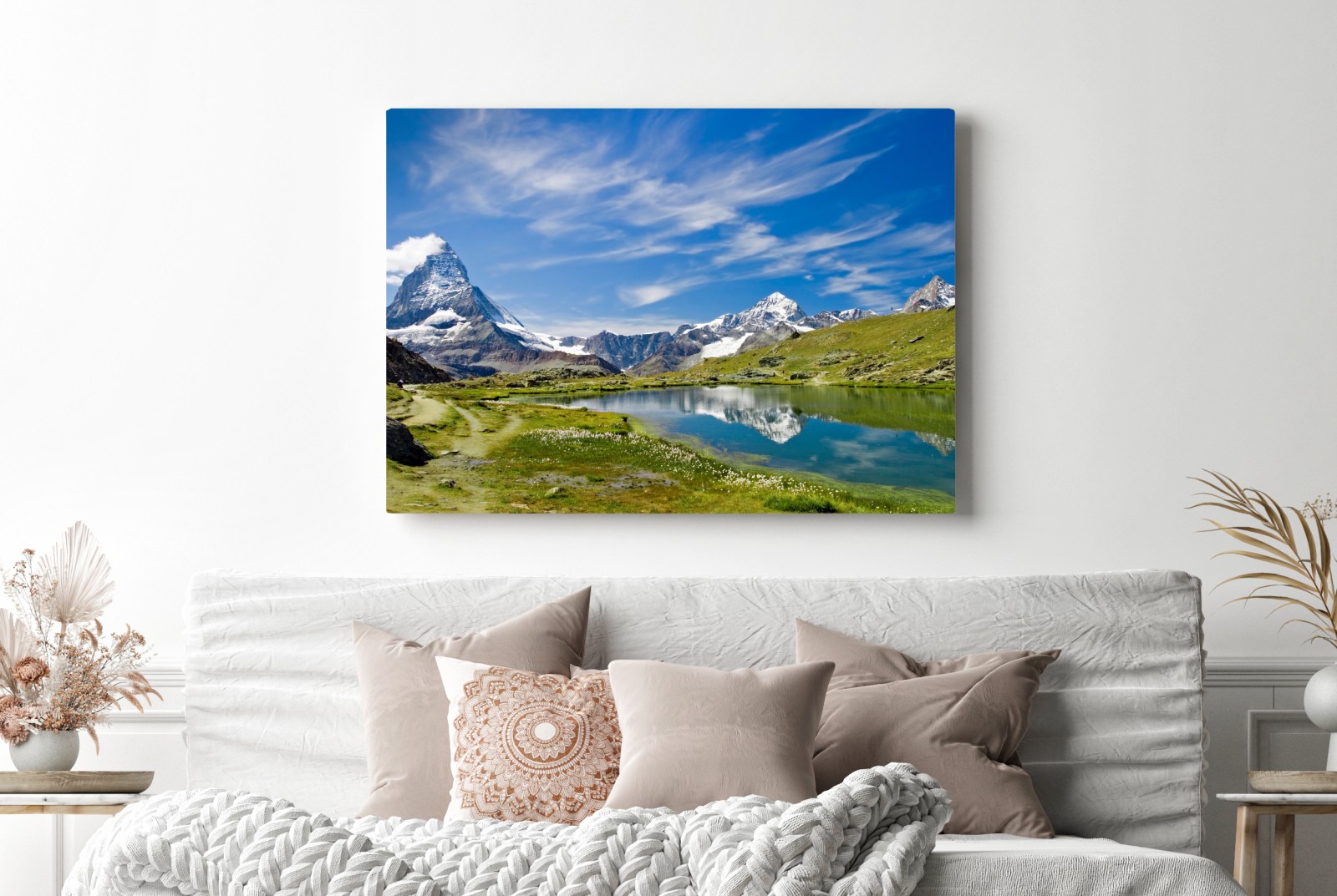 Leinwandbild alpensee mit bergspiegelung – Wallnifity®