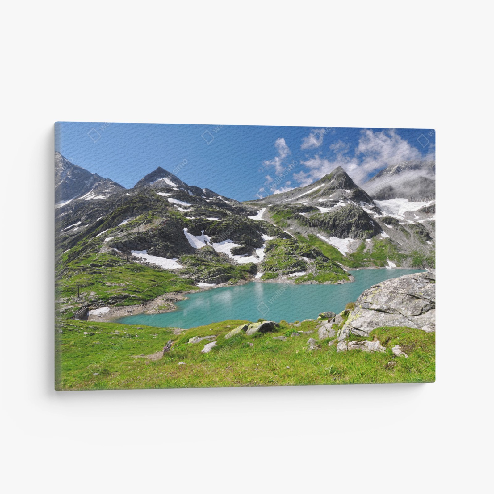 Leinwandbild Bergsee mit türkiswasser und gebirgspanorama