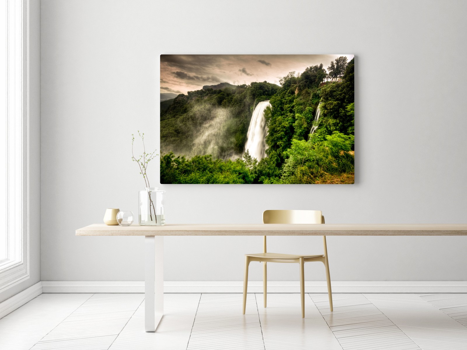 Erleben Sie die beruhigende Kraft des fallenden Wassers und üppiges Grün in Ihrem Zuhause mit diesem eindrucksvollen Bild des Marmore Wasserfalls in Umbrien.