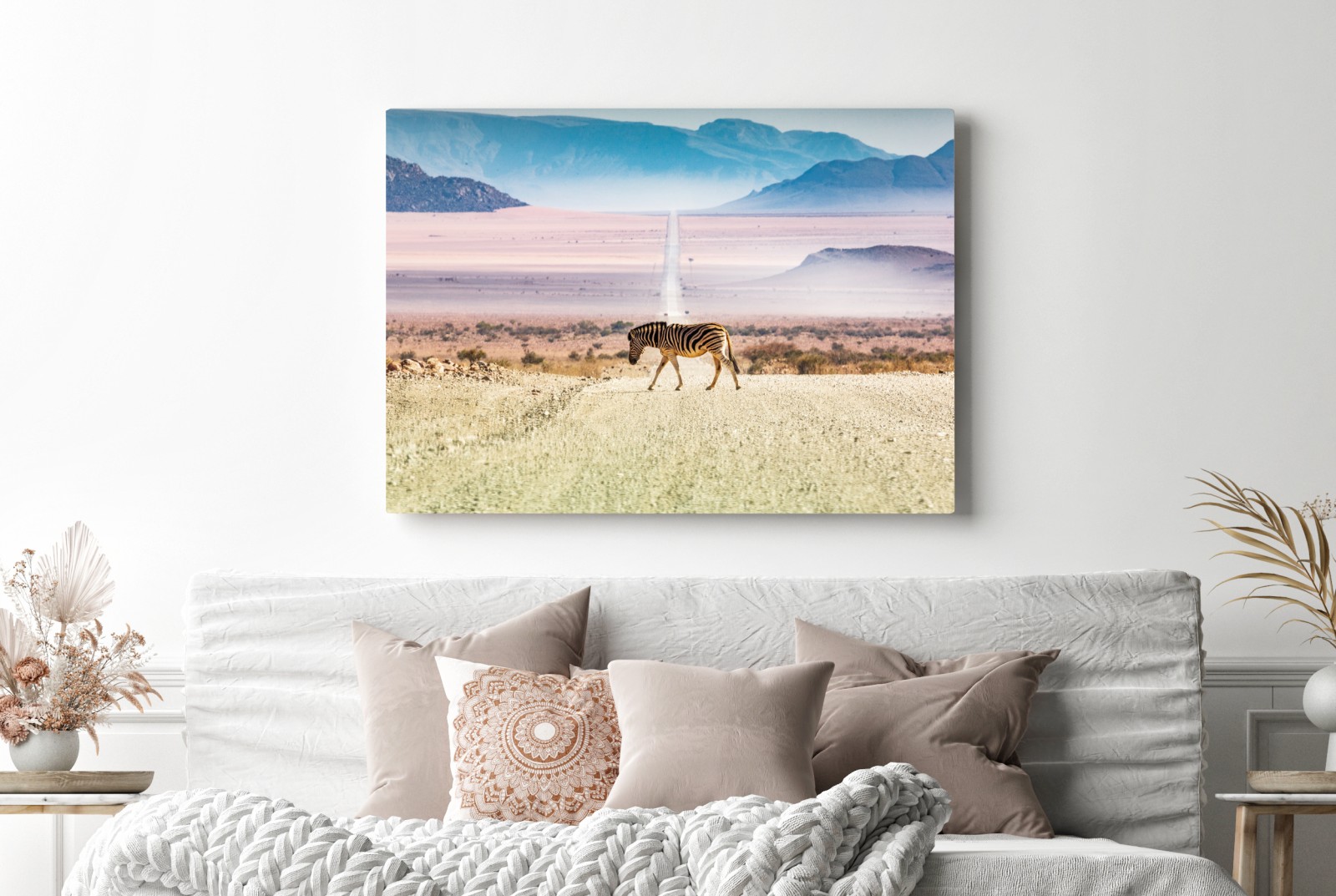 Leinwandbild zebra auf der wüstenstraße – Wallnifity®