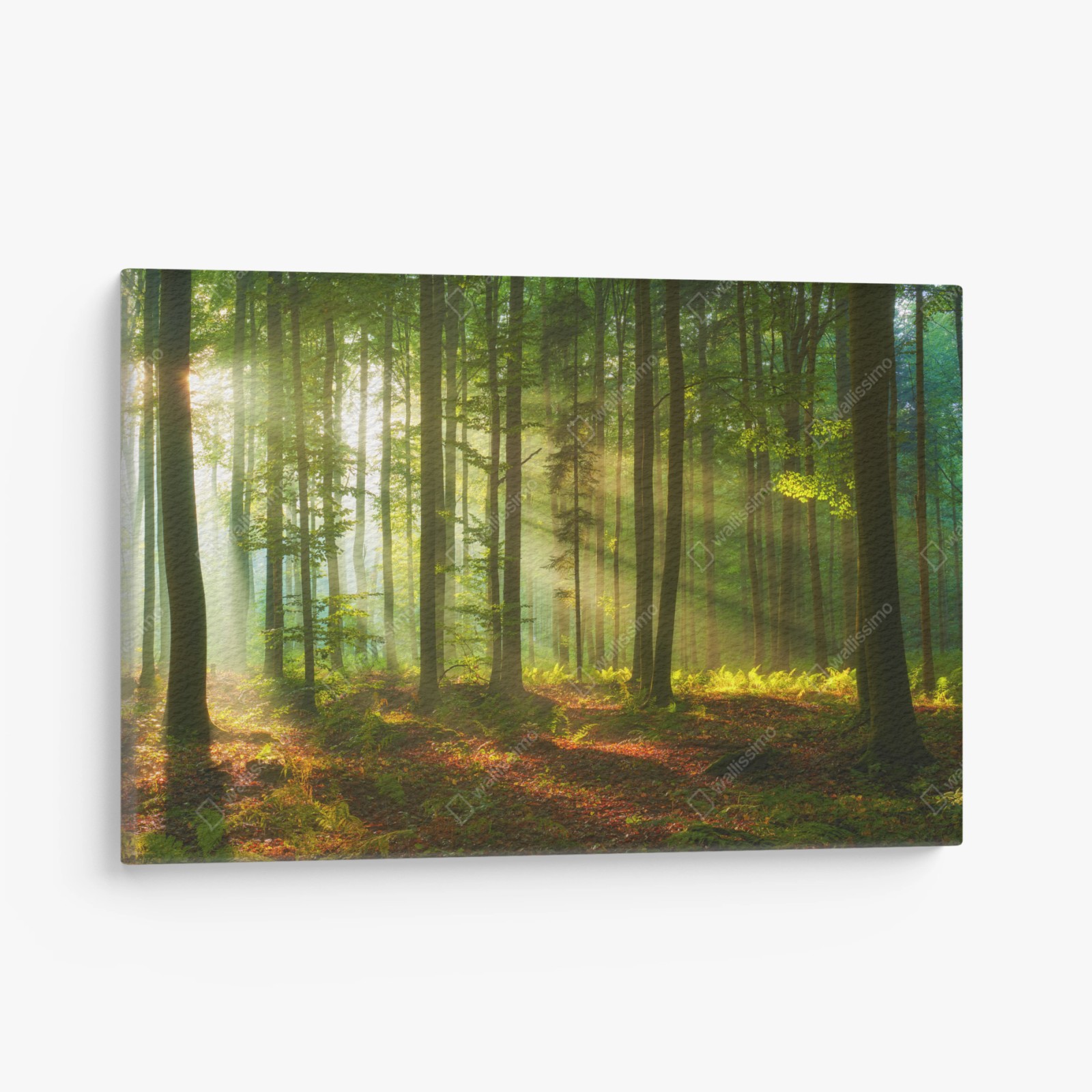 Leinwandbild Morgendliches licht im grünen wald
