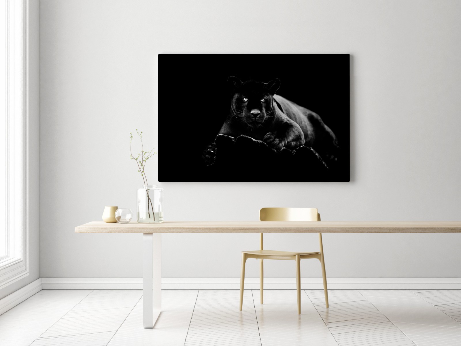 Markantes monochromes Porträt eines schwarzen Panthers, das jedem Raum dramatische Eleganz und starken Kontrast verleiht.