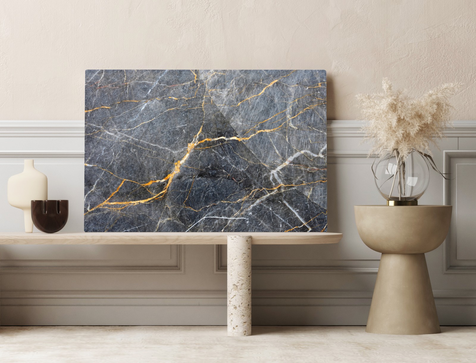 Leinwandbild dunkelgrauer marmor mit goldenen adern – Wallnifity®