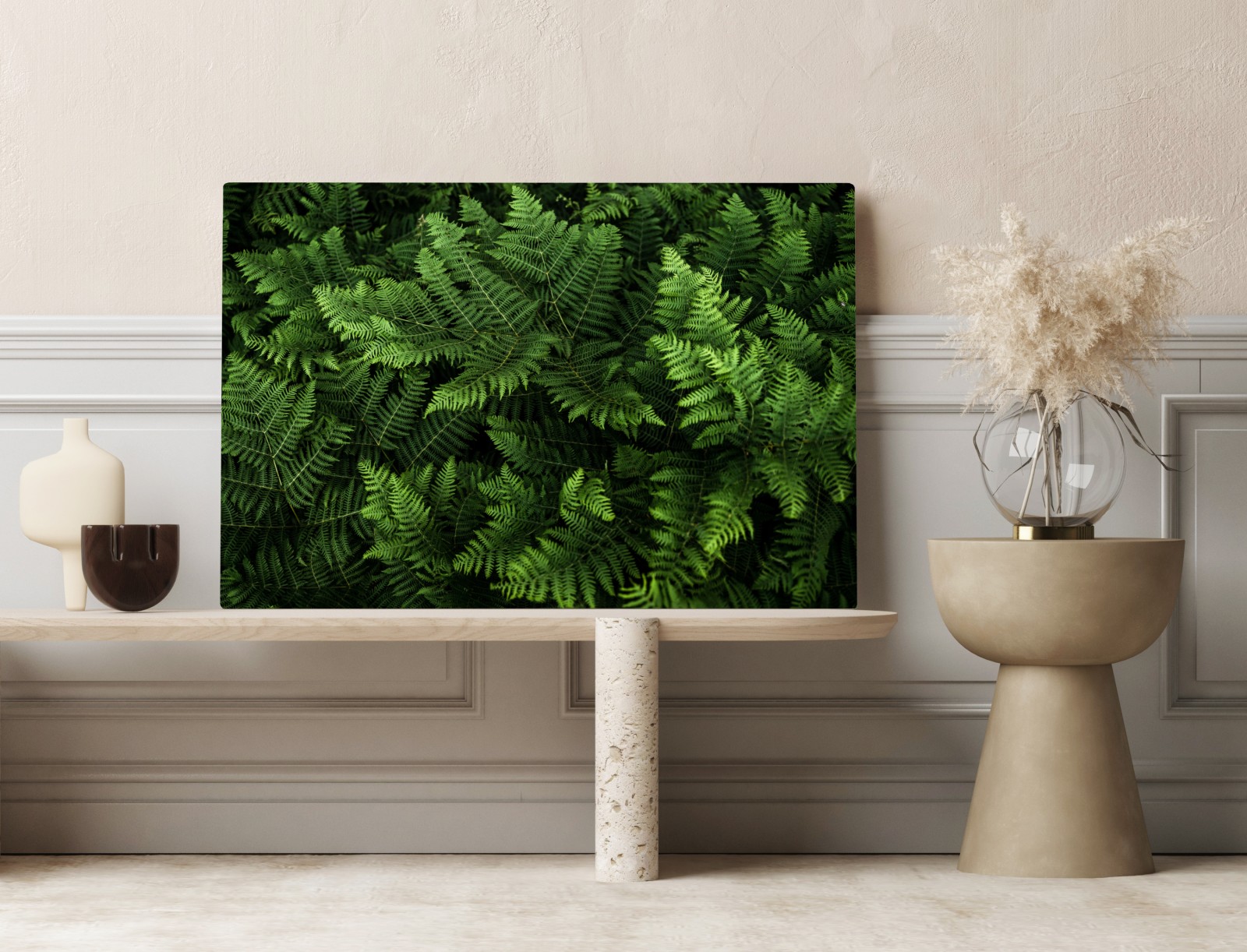 Nahaufnahme von üppigen Farnblättern, die natürliche Ruhe und Frische in jeden Raum bringt.