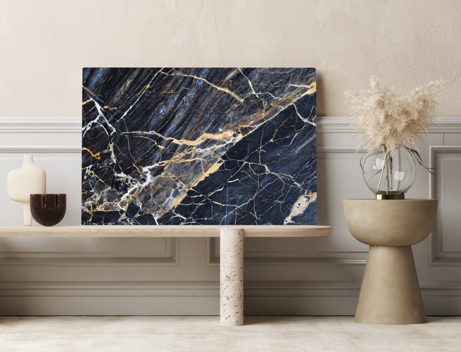 Leinwandbild dunkler marmor mit goldenen und cremefarbenen adern – Wallnifity®