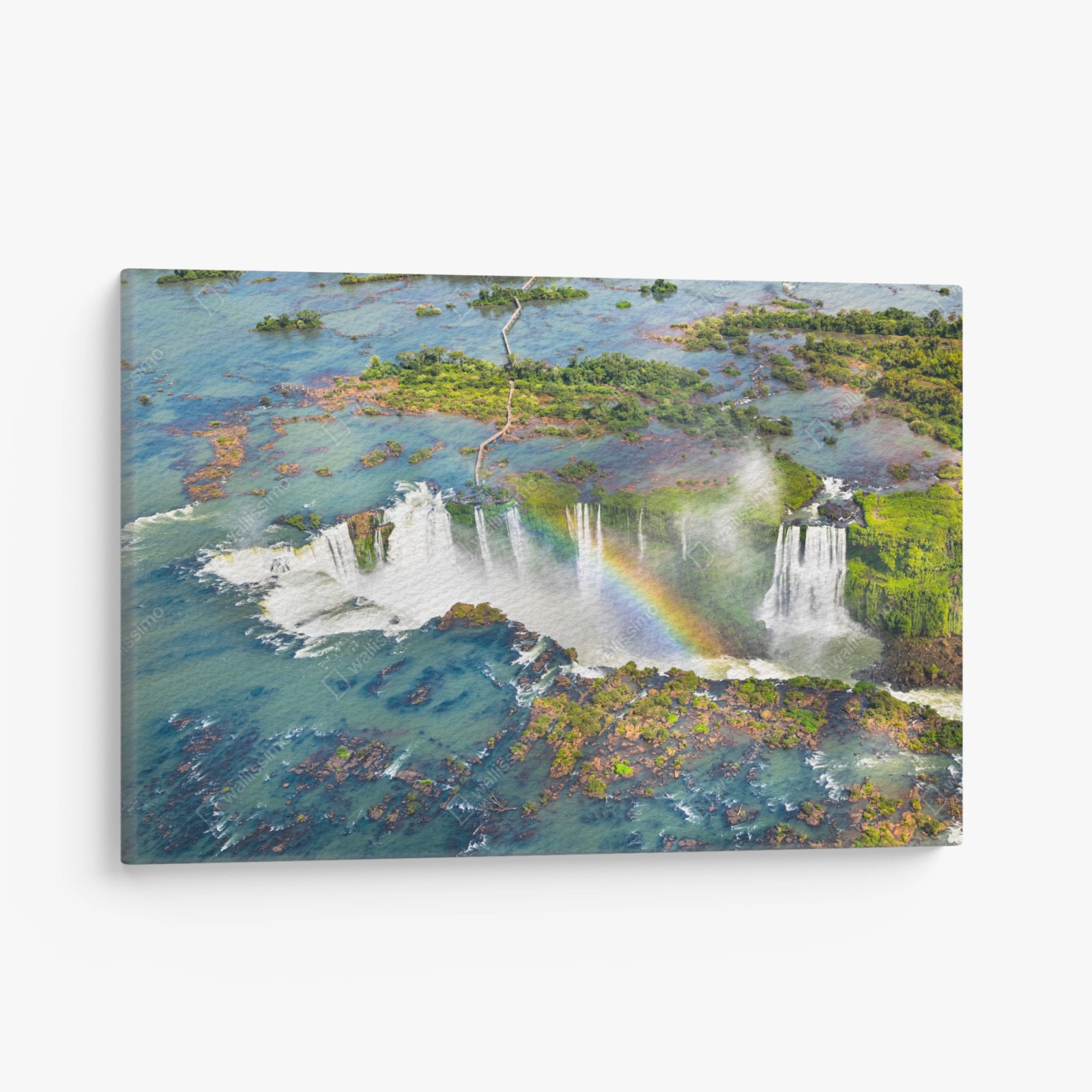Leinwandbild Luftaufnahme tropischer wasserfälle mit regenbogen
