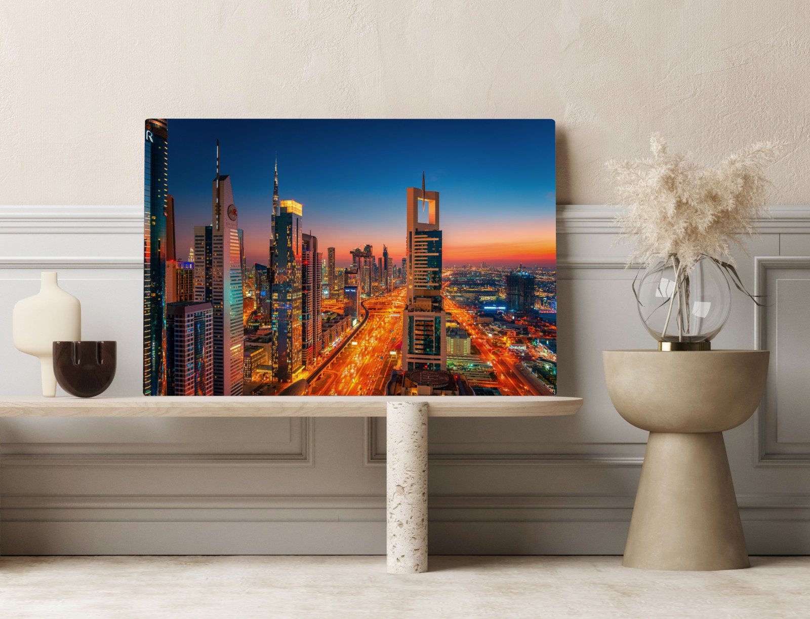 Leinwandbild Dubai skyline bei dämmerung – Wallnifity®