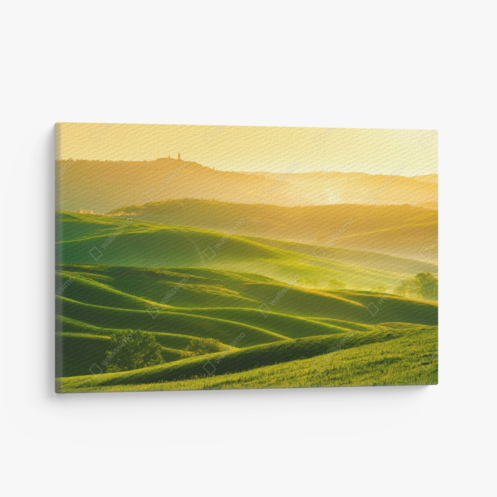 Leinwandbild Goldener sonnenaufgang über sanften grünen hügeln