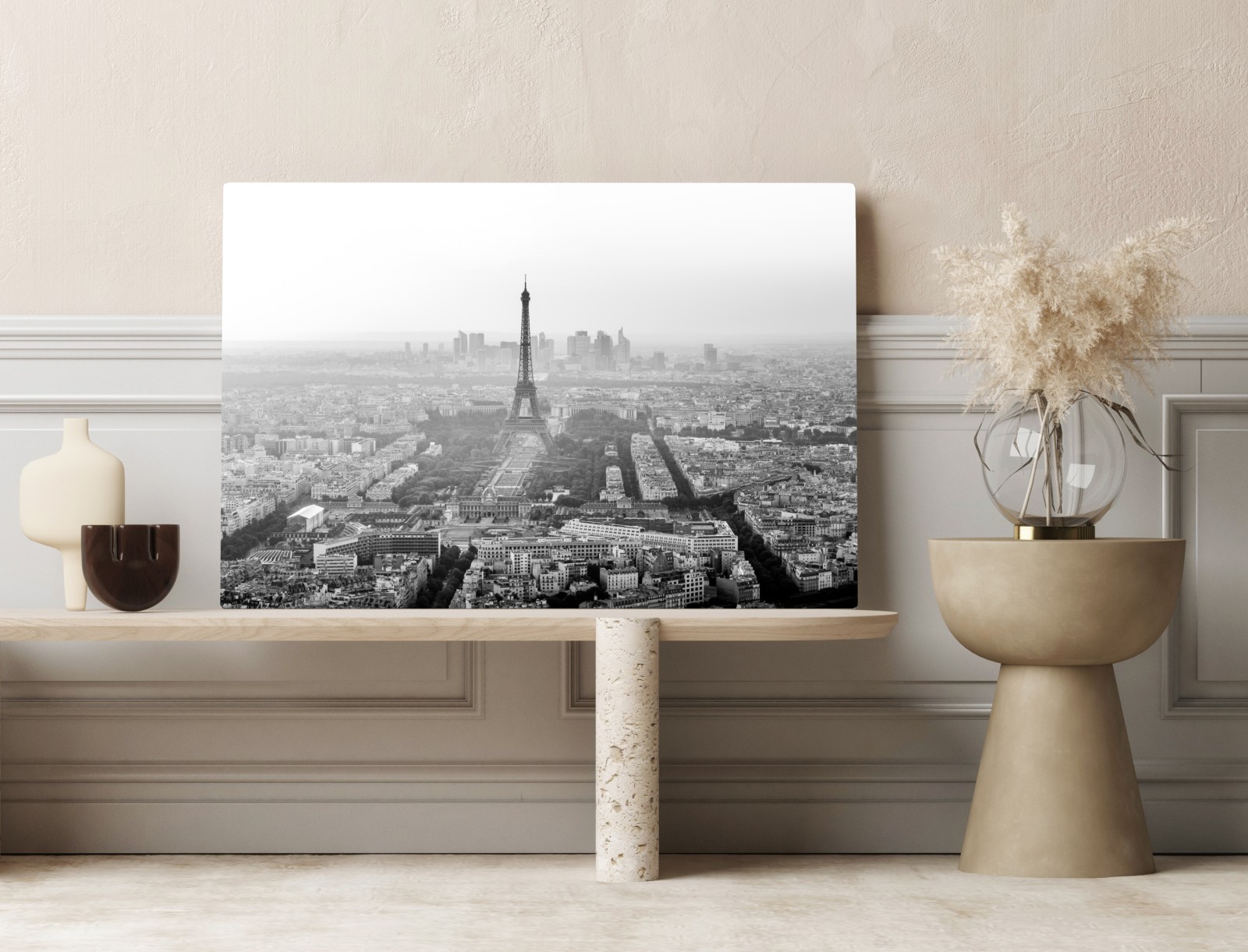 Leinwandbild elegante Eiffelturm luftaufnahme in graustufen