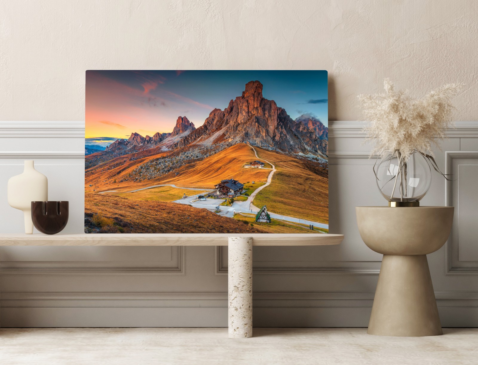 Leinwandbild sonnenuntergang über Passo Giau, Dolomiten – Wallnifity®